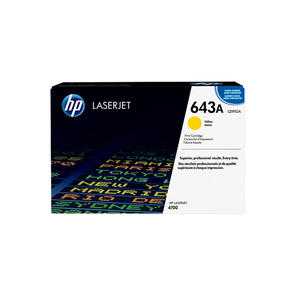 Cartucho modelo: Q5952A; HP 643A (Q5952A) Yellow Original LJ Toner Cartridge Tecnología: Laser; Precentación: Toner; Color: Amarillo ; Compatibilidad: Serie HP Color LaserJet 4700; Rendimiento: aproximadamente 10000 páginas