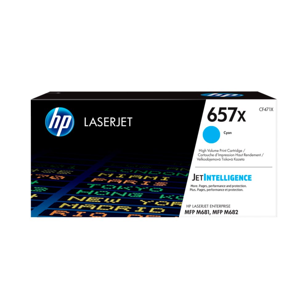 Cartucho modelo: CF471X; HP 657X (CF471X) Cyan High Yield Original LJ Toner Cartridge Tecnología: Laser; Precentación: Toner; Color: Cian; Compatibilidad: Impresora multifunción empresarial a color HP LaserJet de la serie M681 e impresora multifunción empresarial a color HP LaserJet de la serie M682; Rendimiento: aproximadamente 23000 páginas